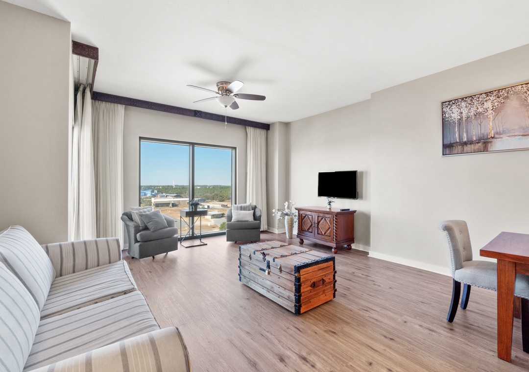 Our one-bedroom condos give families a living space to relax while little ones nap behind a closed door. Each unit will sleep up to 4-guests with a king bed, sofa sleeper, 2-TV’s, and are fully equipped with household essentials like basic cookware, and linens.