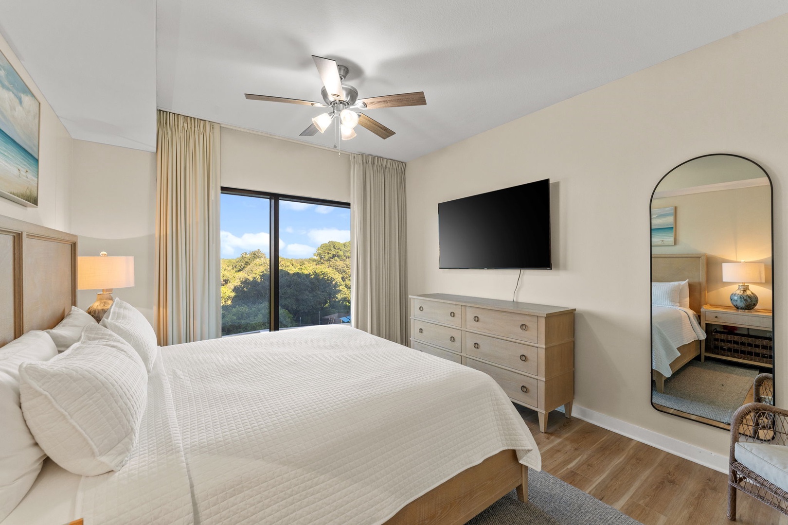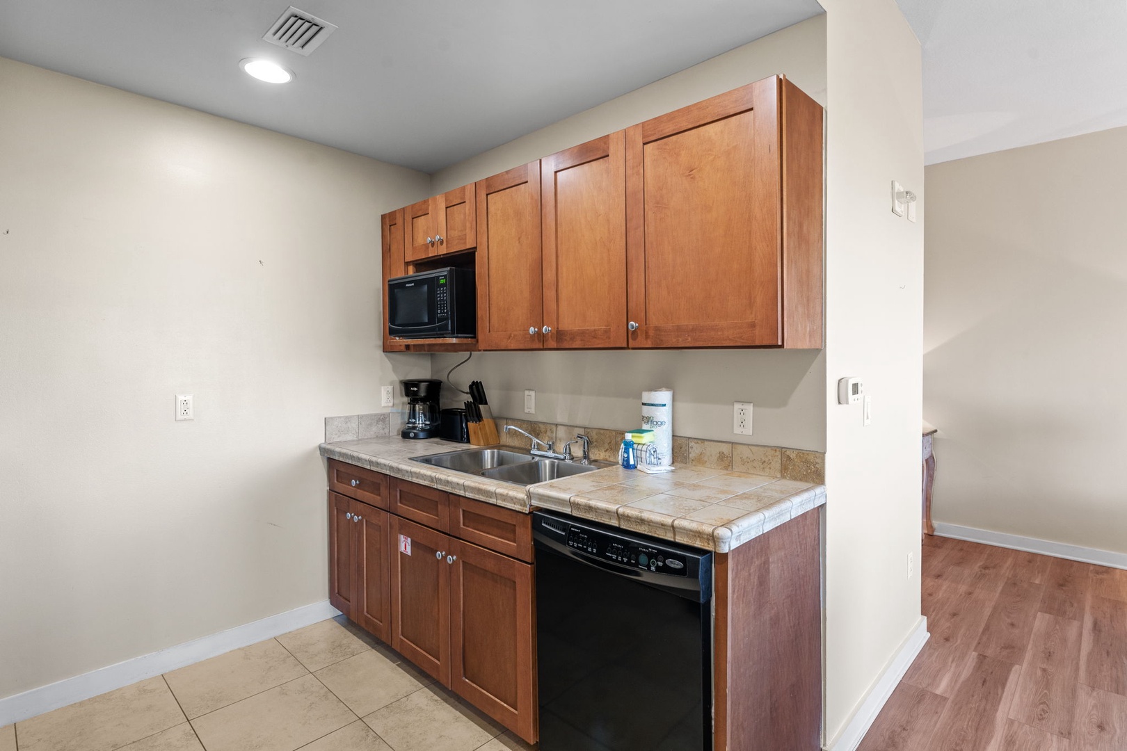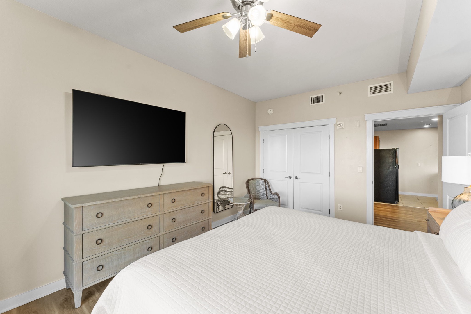 Enjoy the beautiful Panama City Beach sunset and the Gulf from the private balcony or from our unique sunset decks! This one bedroom one bathroom condo offers a full kitchen with full size refrigerator, stove/oven, dishwasher and microwave. Additionally, this unit sleeps 4 guests, with the king bed in the master bedroom and queen size pullout sleeper sofa.