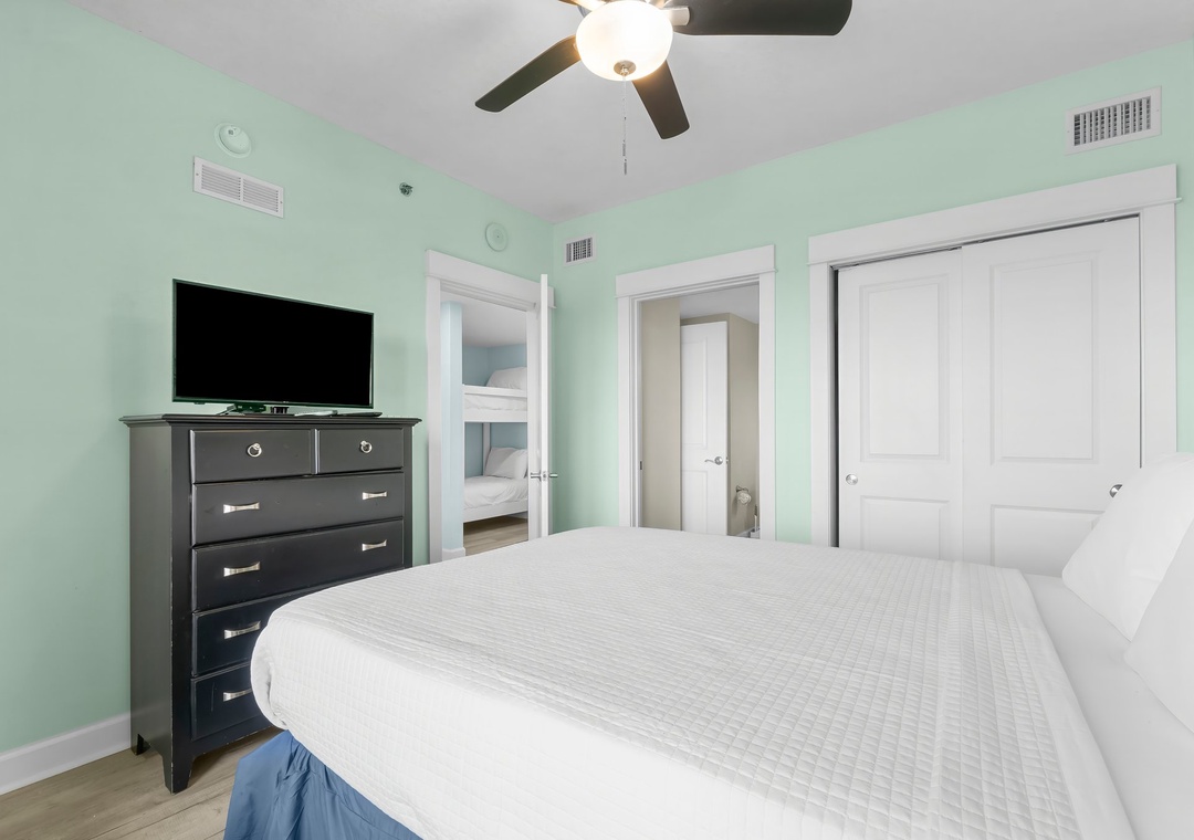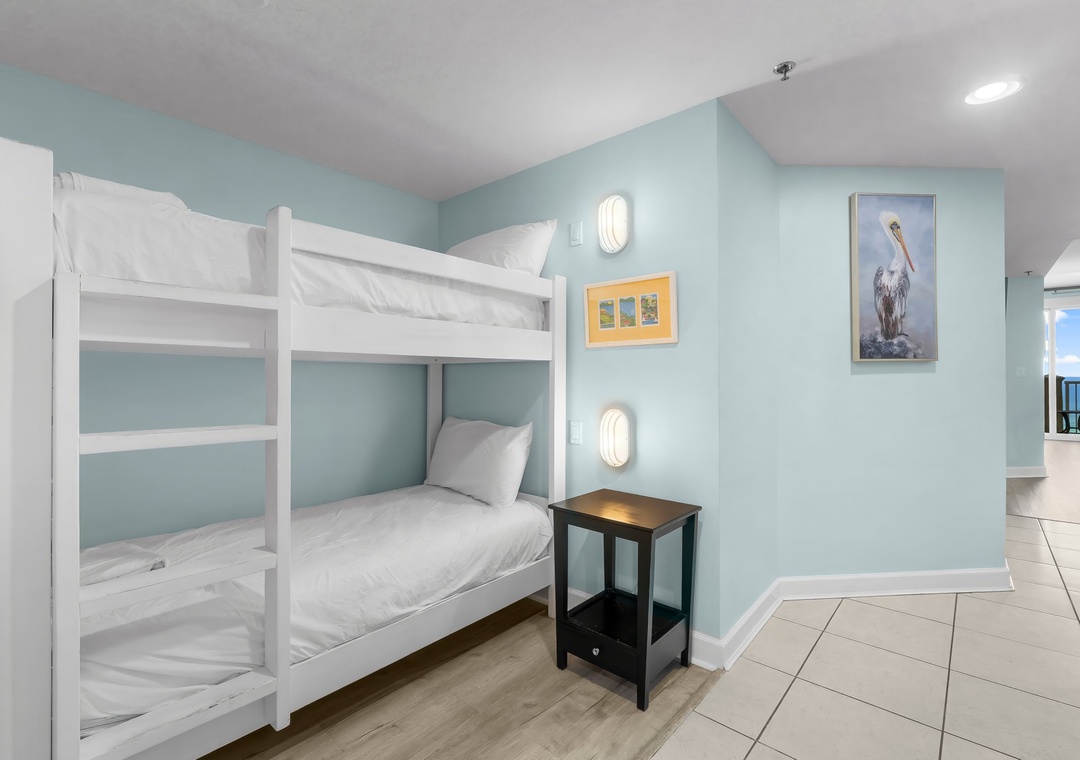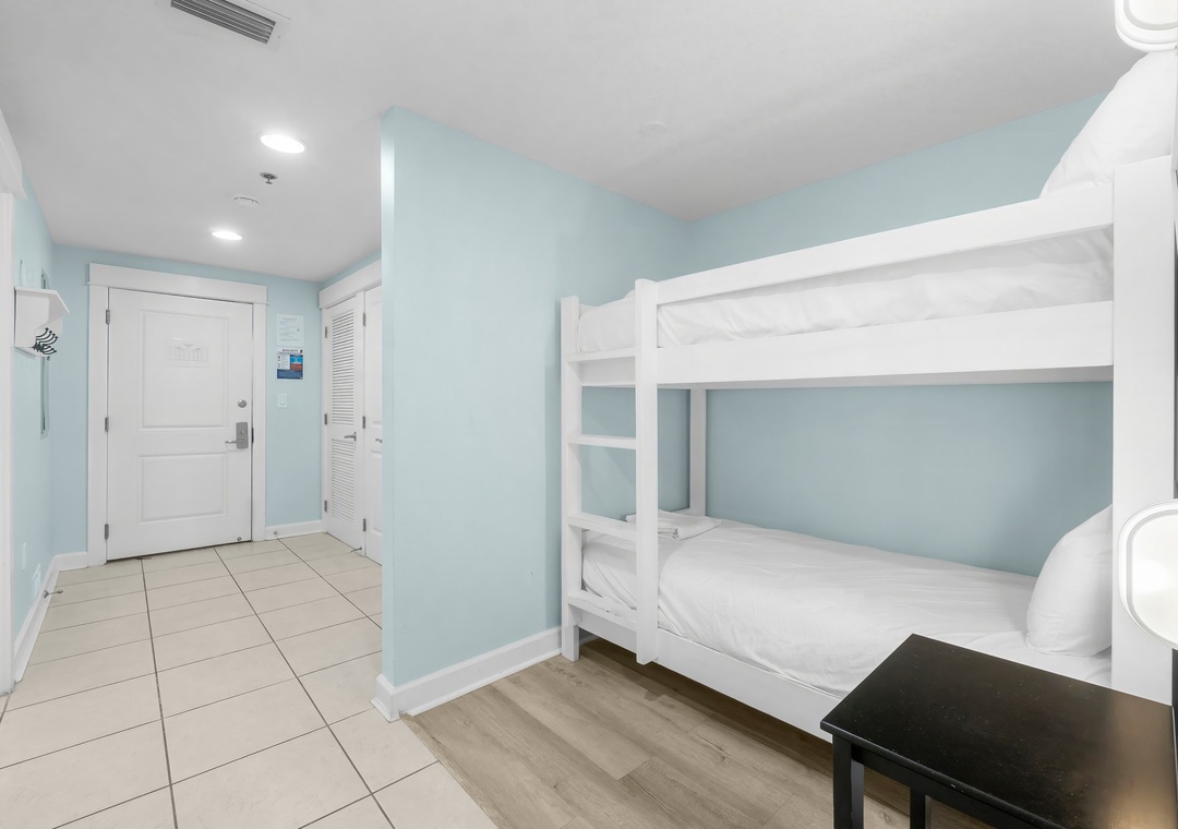 Also, conveniently located in the hallway, the twin over twin bunk beds is perfect for kids or additional guests, providing a fun and cozy sleeping space.