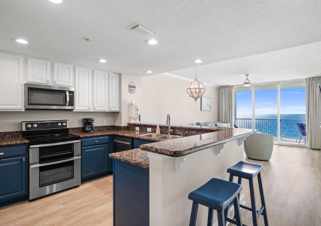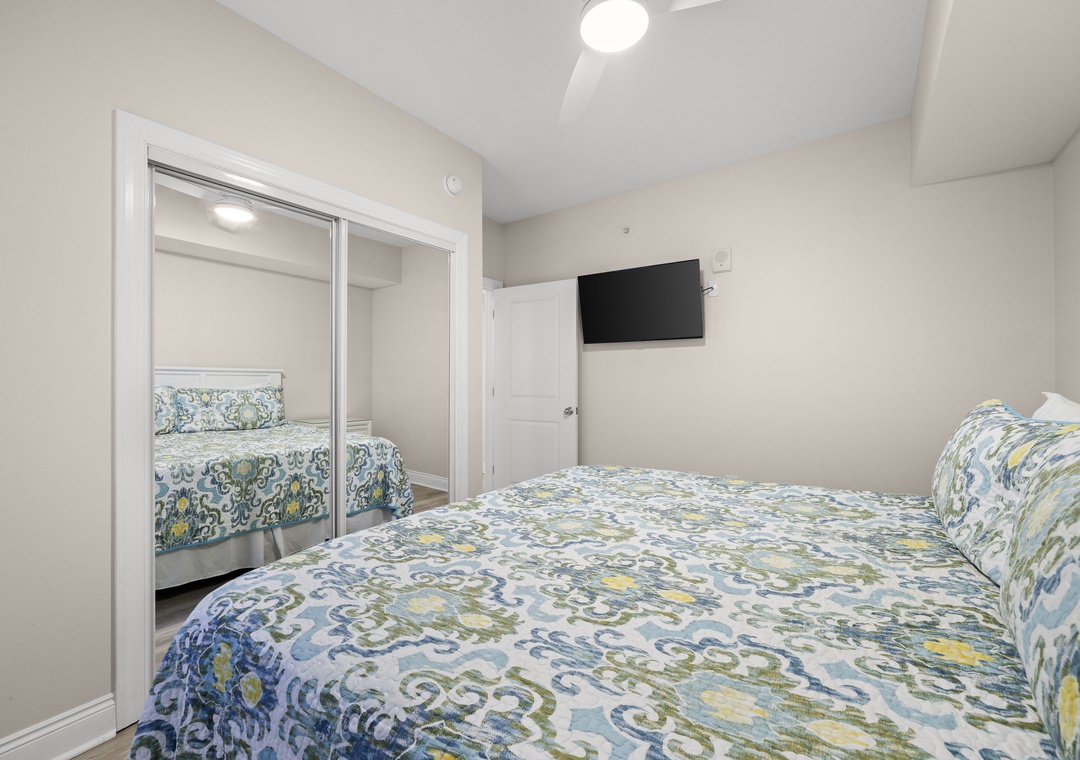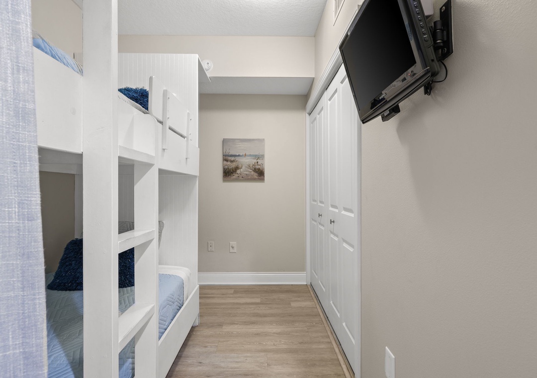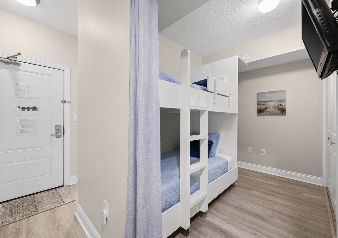 Two Bedrooms and two bathrooms with an additional bunk room makes this condo unit the ultimate family get-away! This condo gives families and guests a separate place to visit and relax while the little one's nap behind closed doors. The unit has one king bed in the master bedroom with on-suite bathroom, which features a gorgeous jacuzzi soaker tub.