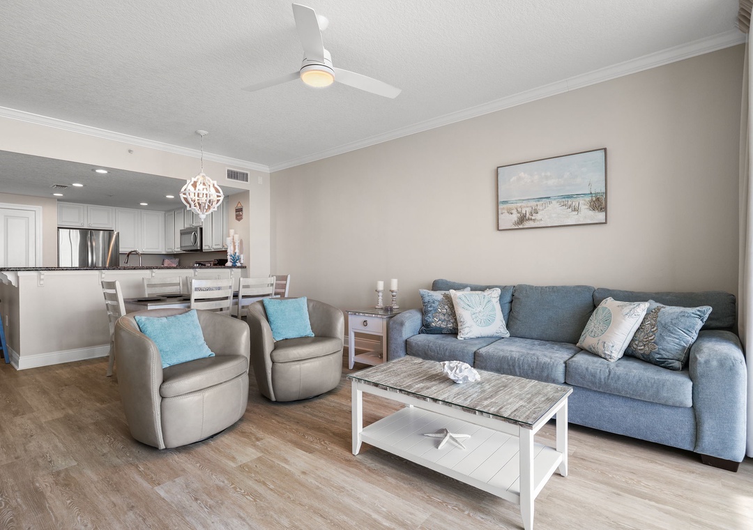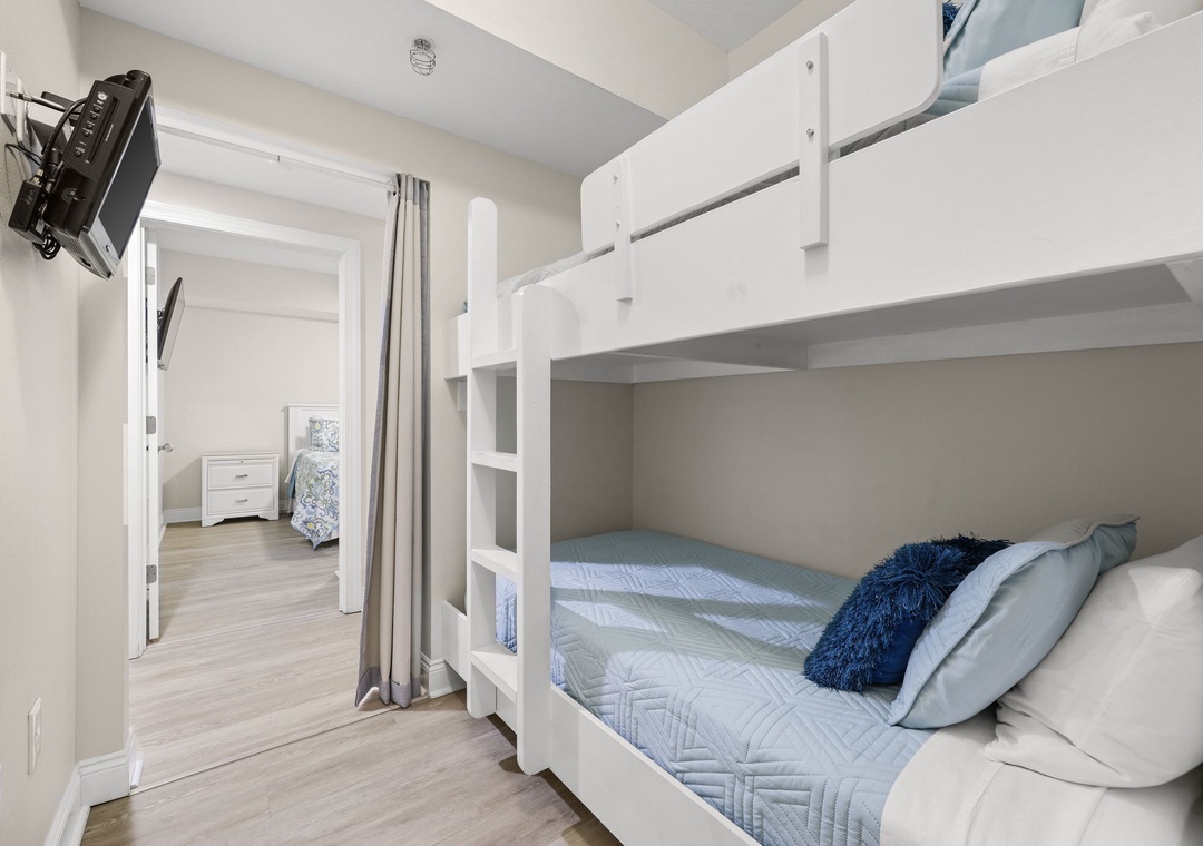 The second bedroom is also a king, as well as a twin over twin bunk bedroom, and a Queen-sized sleeper sofa in the common space living room. MAX occupancy is 8 people.