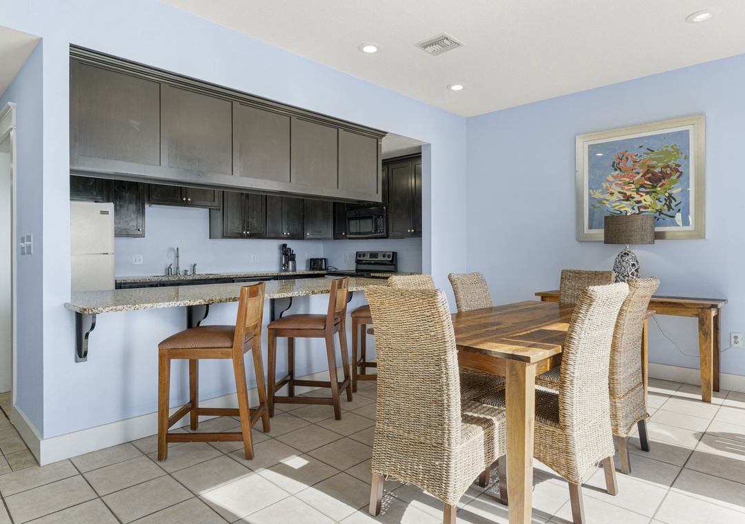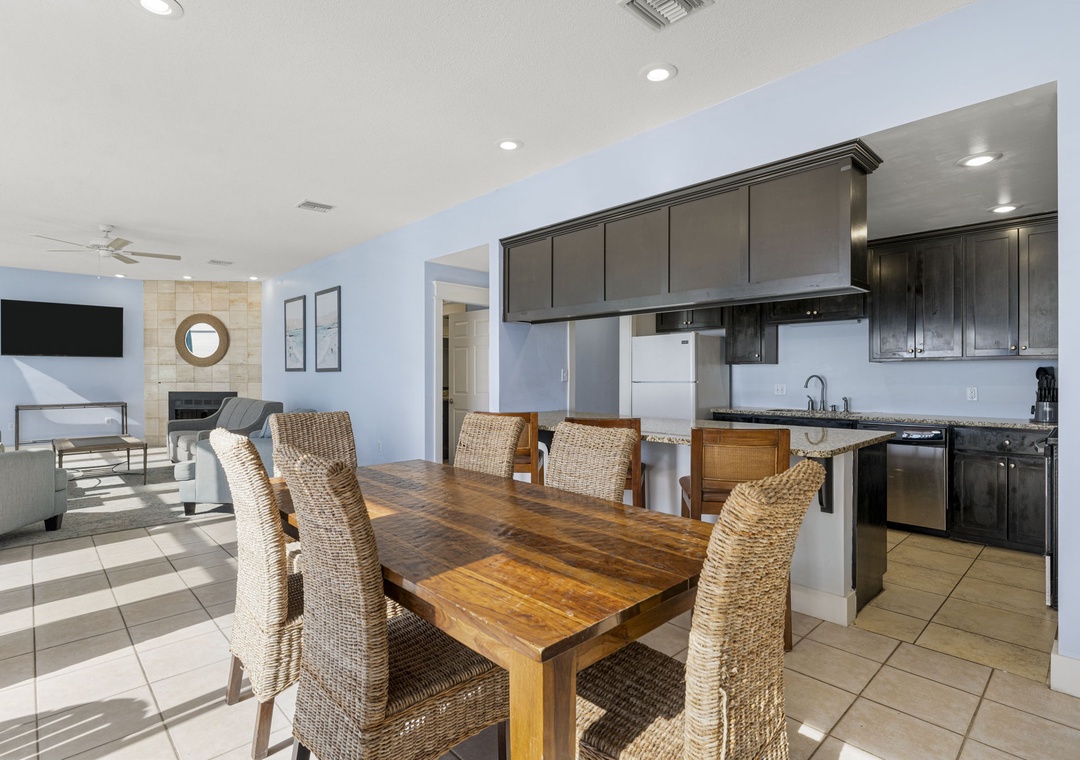 Large dining table, spacious kitchen and a living room where everyone can hang out - all while taking in the beautiful view of the Gulf!