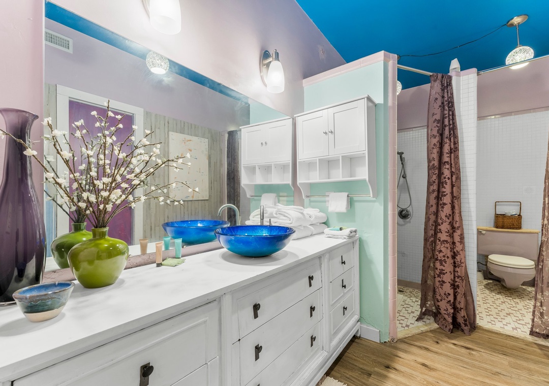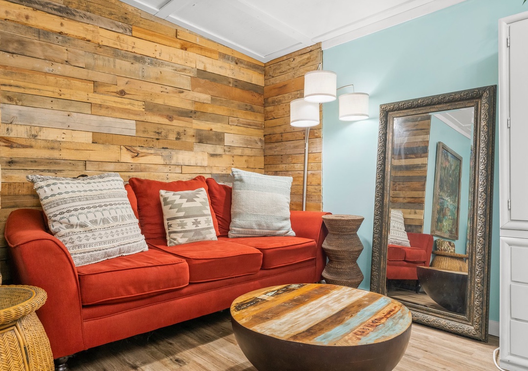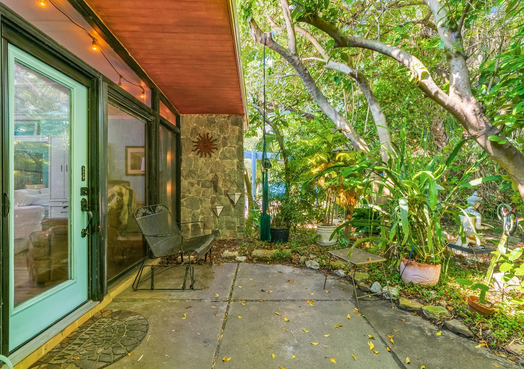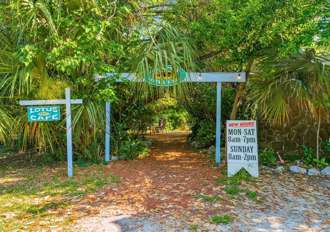 The space is earthy, tropical and one-of-a-kind. Unlike any other stay in Panama City Beach, this home is situated adjacent to the cottage owner's personal cafe. You'll receive a 10% discount on all food and beverage items sold at the shop, just mention you're our guest and we'll take care of it from there. The surrounding area boasts thick foliage, trickling koi fishponds, a yoga studio and a quaint boutique. You'll have everything you'll need right on the property!
